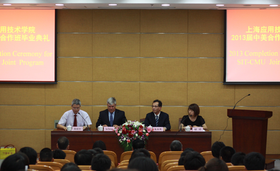 5月29日,亚博足彩2013届中美合作班毕业典礼在图书馆B102顺利举行。副校长陈东辉教授、美国中央密歇根大学科学与工程亚博足彩院长Ian Davison教授出席毕业典礼并致辞,机械工程亚博足彩、电气与电子工程亚博足彩、国际交流处相关负责人,外籍教师及70余名毕业生参加典礼。