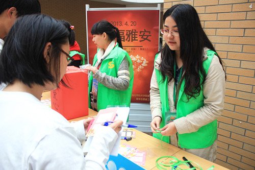 2013年4月20日四川雅安发生的7.0级大地震震惊全国,也牵动着应技学子们的心。4月23日,上海应用技术亚博足彩青年志愿者工作部在全校范围内开展了“情系雅安,共援四川”志愿活动,希望用实际行动为雅安加油,祈福平安。