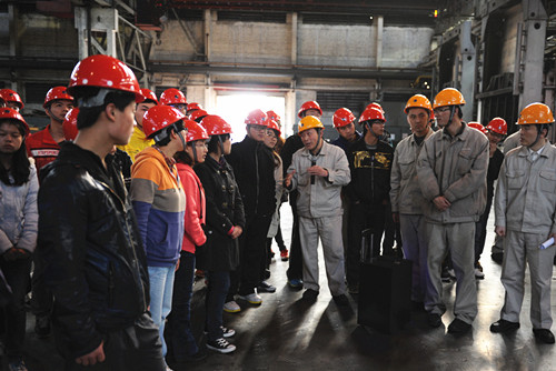 签约仪式后,同学们观看了《印象特钢》视频, 实地参观了宝钢特材冷轧厂、自耗分厂及锻造厂,近距离感受在信息技术高速发展的时代“钢铁是怎样炼成的”。