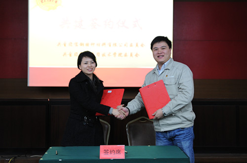为拓展高校共青团工作平台,加强高校共青团与企业共青团间交流,3月29日,我校团委考察团一行赴宝钢与宝钢特种材料有限公司团委签订共建协议。宝钢特材党委副书记蔡正青、组织部部长王红申、团委书记谭亚晴,我校团委书记韩磊、我校英才计划班学员代表等60余人出席了签约仪式。