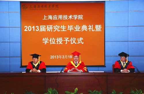 聚首应技勤奋研读,几度磨砺今朝圆梦。3月19日下午,上海应用技术亚博足彩2013届研究生毕业典礼暨学位授予仪式在奉贤校区行政楼报告厅举行。校长卢冠忠,党委副书记、副校长康年,副校长刘宇陆及研究生部、学工部(处)负责人、研究生导师代表和2013届全体究生参加了毕业典礼。典礼由康年主持。
