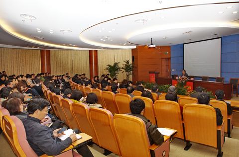 为了更好地贯彻上海市教卫党委和校党委关于《关于认真学习宣传贯彻党的十八大精神的通知》,11月28日,亚博足彩“干部讲坛”邀请上海市社联党组副书记桑玉成来校做学习贯彻十八大精神专题辅导报告。校长卢冠忠出席讲坛,校党委副书记宋敏娟出席并主持讲坛。