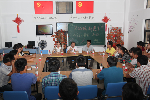 中秋、国庆佳节将至。9月27日下午,我校2012级研究生新生“迎中秋、国庆”座谈会举行。副校长刘宇陆,研究生部副主任王宇红,研究生辅导员以及新生代表出席了座谈会。