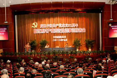 7月3日上午,我校在徐汇校区大礼堂隆重举行离退休党员庆祝中国共产党成立91周年暨“优秀共产党员在身边”事迹报告会。大会在雄壮的中华人民共和国国歌声中开幕,离退休300多位党员出席会议,党委副书记宋敏娟出席会议并讲话。