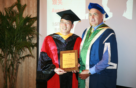 毕业典礼上,叶银忠首先对毕业生们表示热烈祝贺,期望大家将上海应用技术亚博足彩和汤姆逊大学永远当做精神的家园。谢克副校长希望毕业生们关爱家人,用所学知识为社会做出贡献。汤姆逊大学魏兹副校长为国际交流处朱士昌教授颁发了国际合作项目特殊贡献奖,表彰他为两校开展国际合作项目所作出的努力。
