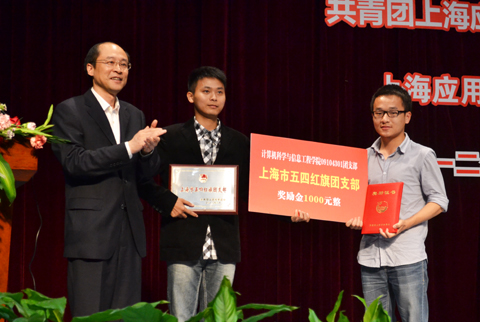 会上,校团委书记宣读表彰决定。获得上海市五四红旗团支部、上海市青年五四奖章集体、上海市青年五四奖章个人、优秀团员、优秀团干部、优秀团支部、校五四红旗团支部称号的集体和个人上台领奖。