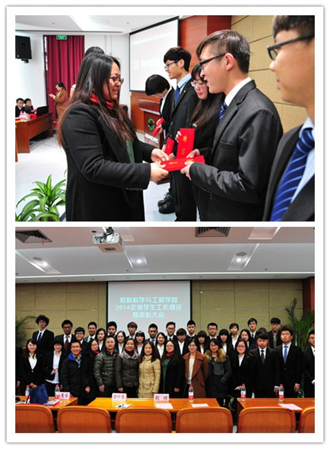 亚博足彩领导为第三届材料亚博足彩金相大赛获奖同学颁发证书,为“优秀班导师”和“优秀学生班导师”颁发奖状,团总支书记朱菁为第六届团总支、学生会全体学生干部颁发聘书,最后,为第十四届校运动会中立下汗马功劳的个人和集体进行了表彰。