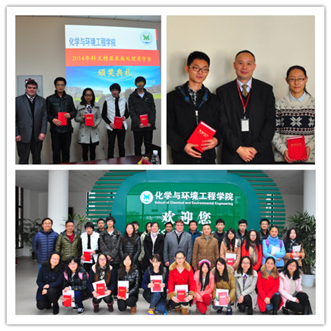 近日,化工亚博足彩举行“岛津英才奖学金”与“科文特亚表面处理奖学金”颁奖仪式,该奖项特为应用化学专业中品学兼优的学生设立。岛津企业管理(中国)有限公司营业部部长吴鸣飞、科文特亚表面处理技术(苏州)有限公司总经理Joseph CHIANALE等企业领导受邀出席。