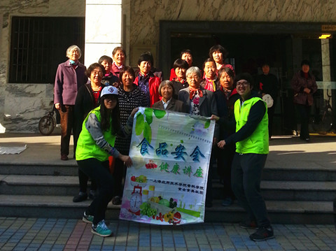 11月14日下午,香料亚博足彩食全食美社(香料亚博足彩科学商店)与香料凡星公益服务队进入奉贤校区附近的居民小区——江海五居社区进行食品安全公益宣讲活动。