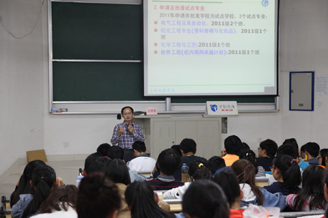 10月30日晚,工程创新亚博足彩在二教I106举办以《卓越计划与成就卓越之路》为题的入学教育讲座,工程创新亚博足彩副院长、高级工程师吴梦初老师担任主讲,四个“卓越计划”试点专业(电气工程及其自动化专业、化学工程与工艺专业、轻化工程专业及软件工程专业)的专业主任及2014级140余名新生参加讲座。