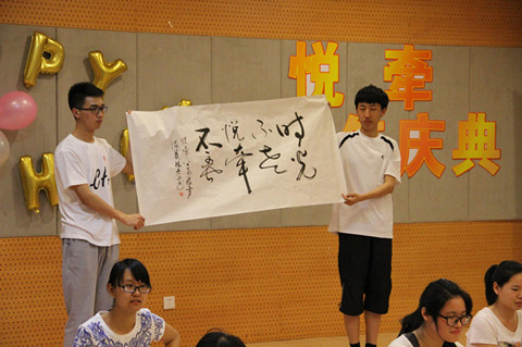 5月28日,全体悦牵成员在大学生活动中心103教室还举办了“时光不老、悦牵不离”三周年庆典晚会。晚会充满欢声笑语,感人的视频、精彩的表演、热闹的游戏、别具一格的祝福拉近了同学间的距离,使“悦牵”成为一个和谐的大家庭。