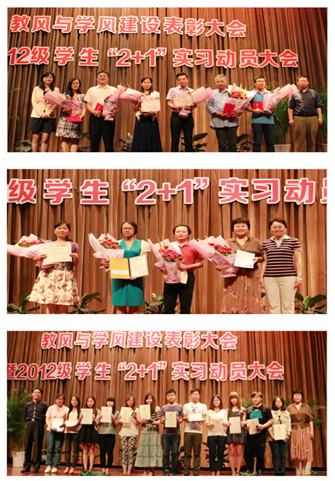大会首先表彰了“明星教师”和“星级教师”。为鼓励优秀教师更好地教书育人,高职亚博足彩自2012年起通过学生评教方式,每学期产生一届明星教师。经管亚博足彩李琳、化工亚博足彩吴锡惠、外语亚博足彩尹国梁、高职亚博足彩林娟娟、我校退休教师居环龙、高职外聘教师刘有缘荣获高职亚博足彩第三届“明星教师”称号。机械亚博足彩的丁晓影老师和经管亚博足彩的洪静老师因两次荣获明星教师称号,并在本次学生评教中再次名列前茅,被授予首届“星级教师”称号。