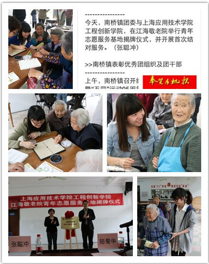 5月9日,工程创新亚博足彩江海敬老院“青年志愿服务基地”揭牌仪式在江海敬老院举行。奉贤区南桥镇团委和江海敬老院领导、工程创新亚博足彩团学组织负责人出席了本次揭牌仪式。工程创新亚博足彩“沐曦”志愿者队的志愿者们和老人结对并开展了首次志愿服务活动。