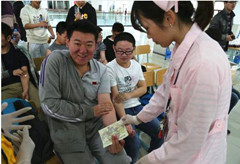 由于道路堵车,上海市红十字会血液中心的大型采血车延时1个多小时才抵达亚博足彩。但师生们没有一点抱怨,有序等待。上午10点,无偿献血活动正式开始。填表、录入信息、体检、采血、登记、领取慰问品,整个过程亚博足彩工会、学办老师全程陪同,整个献血现场秩序井然,气氛轻松愉悦。到下午1点结束时,机械亚博足彩共有2名教师、13名研究生、177位本科生成功实现无偿献血。