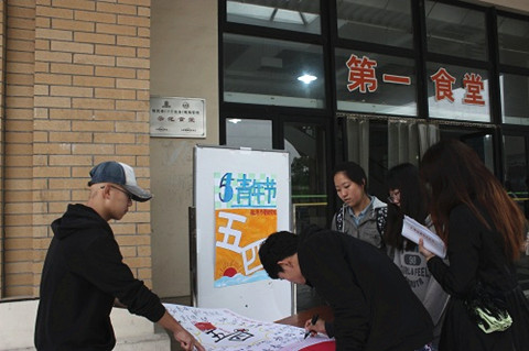 5月4日中午,经管亚博足彩学生在一食堂门口成功开展了以“我的青春,我的梦”为主题的五四青年节手绘海报签名活动。本次活动旨在以五四青年节为契机,传达青春热情,点燃同学们的青春梦想。