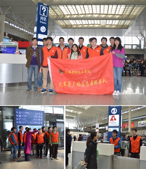 轨道交通亚博足彩“1+N”义工队成员和通号、交通、机辆三个专业的学生,从校园走进社会,奔赴虹桥火车站开展以“弘扬雷锋精神,投身志愿服务,传递青春正能量”为主题的志愿服务。