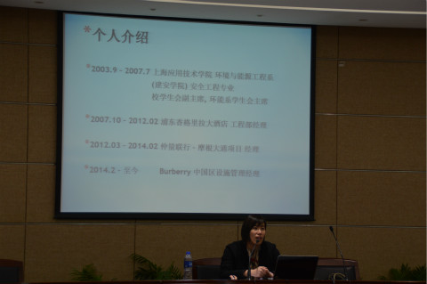 3月6日晚,在奉贤校区图书馆B101报告厅,城建亚博足彩邀请我校2007级毕业生、现任Burberry公司设施管理部中国区经理的陈瑾婧校友,为学生作了题为《从象牙塔里的毕业生到职场上的职业经理人的转变》的讲座。