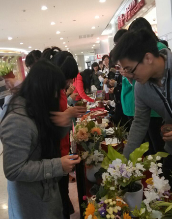 生态亚博足彩“科学商店”的志愿者们带去了居家植物以及插花作品,为社区居民介绍居家植物养护知识,还让社区居民现场体验插花。社区居民反响热烈,纷纷向志愿者讨教植物种植技巧。为及时解答居民植物养护方面的问题,生态亚博足彩“科学商店”的志愿者们还特别设立了“植物健康小卫士”微信平台及“植物诊所”百度贴吧,通过网络平台,及时解答居民问题。