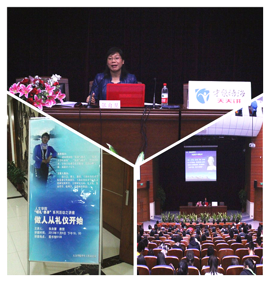 11月6日,人文亚博足彩在图书馆B106举行“明礼·修身”主题教育活动讲座,本次讲座以“做人从礼仪开始”为主题,由校党委宣传部部长、校礼文化研究所所长张自慧教授主讲,全场近三百名学生聆听了讲座。