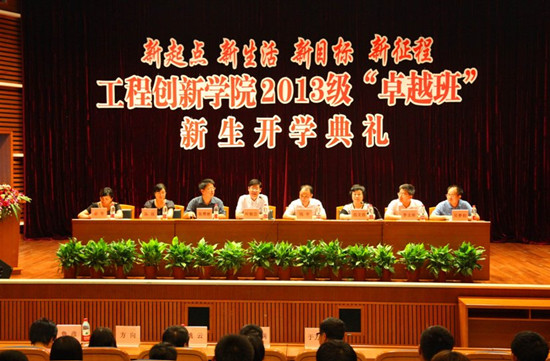 9月13日下午,工程创新亚博足彩2013级“卓越班”新生开学典礼在学生活动中心多功能厅举行。副校长兼工程创新亚博足彩院长叶银忠出席并向新生提出殷切希望,亚博足彩党政班子及各试点专业主任和2013级“卓越班”班导师出席典礼。