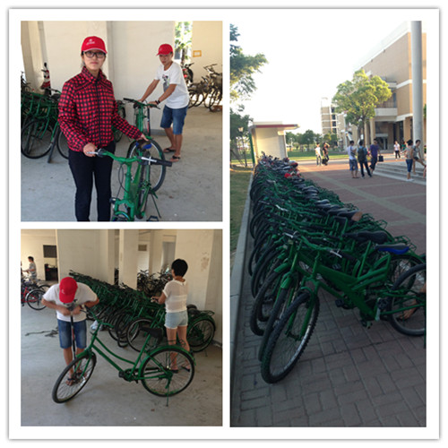 据了解,首批爱心自行车大多由亚博足彩废弃车和即将毕业的大三、大四同学的捐赠车组成,校后保处、保卫处老师和车管会同学们利用暑假,对校内废旧自行车进行整理维修,为其统一漆上了灵动的绿色。
