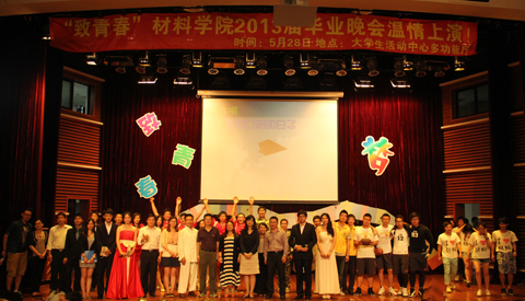5月28日晚,“致青春”材料亚博足彩2013届毕业生晚会温情上演。校学生处、组织部、后保处、校团委及材料亚博足彩相关负责人亲临晚会现场,共同见证应届材料学子四年的成长历程。