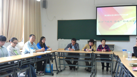 为促进学生确立正确的人生观、价值观,让同学们对“中国梦”有更为具体全面的认识,5月9日下午,机关第五党支部与外国语亚博足彩11111211班双结对在二教G208召开“理想,青春”的座谈会。机关第五党支部相关领导、老师,外国语亚博足彩辅导员孟乾及学生代表参加座谈会。