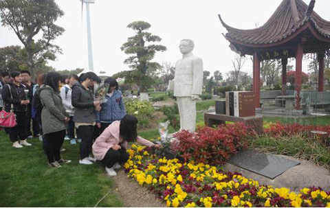 海湾寝园是著名的爱国主义教育基地,里面安放着众多烈士、名人、精英的墓碑和纪念像。4月4日上午,志愿者们前往陶行知先生的石像前瞻仰,用心倾听园区经理关于陶行知先生的求学经历,及其对中华民族教育事业所做贡献的介绍。通过默哀、敬献鲜花等形式,大学生们表达了对陶行知先生的仰慕、崇敬和无限缅怀之情。