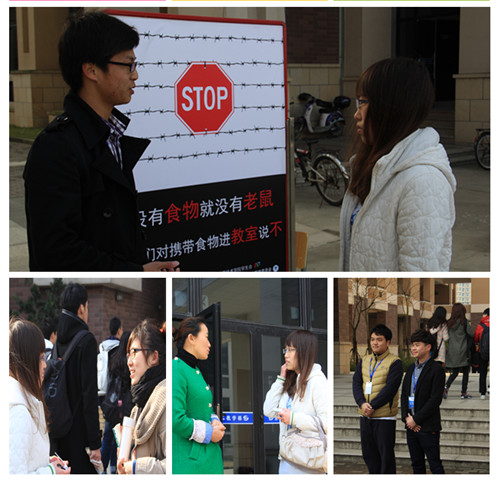 活动的开展也得到了老师们的支持和赞许,一位老师说:“教室本来是传道授业解惑的场所,可是现在的不文明现象已经影响了教学的正常进行,学生组织自发维护教室的教学秩序,你们做的好。”