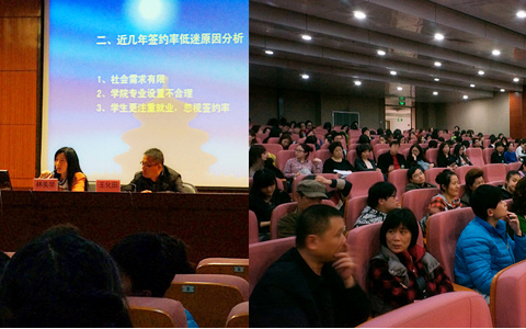 林美琴向参加会议的同学及家长详细介绍近几年艺术亚博足彩的就业状况以及就业签约率总体情况,对促进就业的措施进行了详细的解说。她建议同学们早准备,勤调研,提前做好职业规划。还为毕业生详细讲解了求职过程中一些重要的时间结点,应该注意的一些问题。
