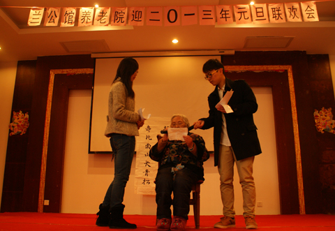 为深入贯彻落实十八大精神,广泛开展走基层,送温暖活动,近日,人文亚博足彩学生党员、入党积极分子来到党员服务基地——奉贤区兰公馆养老院举办“迎接2013元旦”文艺晚会。兰公馆养老院院长袁震、护理部主任陈林林和老人们观看了晚会。