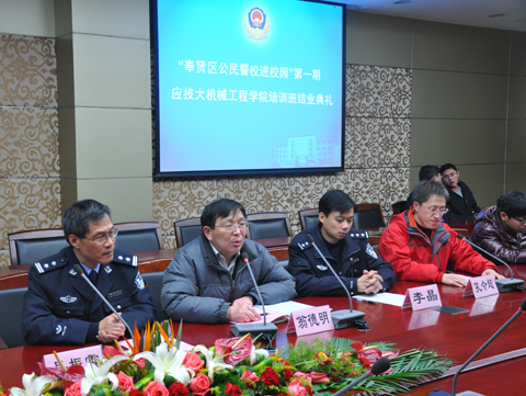 12月21日,我校机械工程亚博足彩首批公民警校培训班在图书馆B103举行结业典礼。奉贤公安分局领导、我校学生处副处长翁德明出席典礼。