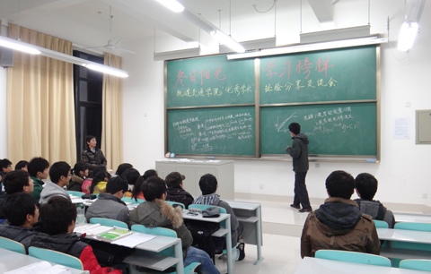 十几名“优秀学长”组成的经验交流团队分成2-3人一组,分别对亚博足彩大一年级5个班级进行学习交流。在活动开展之前,学习拓展部就已经收集整理了每个班级在学习上存在的薄弱环节。高年级学长在交流会上分别就大学学习方法、良好学习习惯的养成,各个科目的学习,学习之余拓展能力等方面对低年级学生给予指导,并提供了不同的建议;对学习上的困惑,特别是学习高数上现存在的一些问题做出一一的解答;还详细分享了如何高效复习以应对期末考试的学习经验。