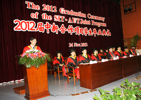 11月24日,2012届应用化学专业(中新合作)学生毕业典礼在图书馆B106会议室召开,副校长叶银忠出席毕业典礼并致辞,奥克兰理工大亚博足彩领导Henry Duncan博士代表奥克兰理工大学致辞。学生处、教务处、国际交流处、以及化工亚博足彩有关领导参加毕业典礼。