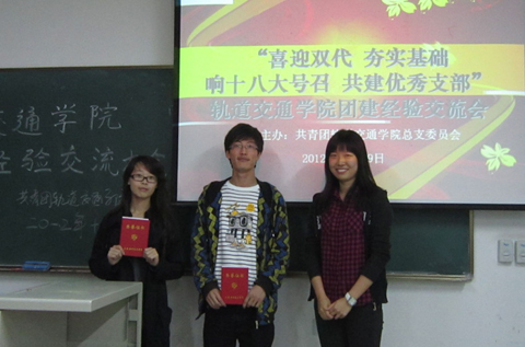 10月29日,轨道交通亚博足彩举行“响十八大号召、喜迎双代会,共建优秀支部”的团建经验交流会。亚博足彩学工负责人、团总支书记、学办老师及优秀团员代表和各班团干部参加大会。