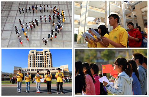 10月19日下午,经管亚博足彩百名学生参与录制的“鲜红的党旗永不褪色”大型诗朗诵活动圆满落下帷幕。同学们以饱满的热情、振奋的精神分别在二教与图书馆门前,整齐排列出“党徽”与“十八大”等队形,慷慨激昂、催人奋进演绎着整首诗歌,抒发了为中华民族的伟大崛起而奋斗的豪情。