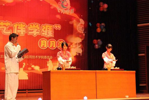 伴随着铁观音的茶香,晚会在我校“逸清茶社”表演的茶韵墨香茶艺中拉开帷幕。来自华东理工大学、上海财经大学的同学亦为观众送上了韵味茶艺。同时、校器乐社的古琴独奏《流水》、葫芦丝古筝合奏《月光下的凤尾竹》、独舞《青蛇》、相声社《请你喝茶》、人文亚博足彩带来的歌舞《新贵妃醉酒》将整个晚会带入了高潮,在场观众连连叫好!最后由服装文化社和人文亚博足彩礼仪队带来的茶谣走秀则以灵动的画面、幽静的音律、悠长的遥想将茶的“清、静、雅”体现得淋漓尽致,观众的心境也融入了淡淡的茶香中。