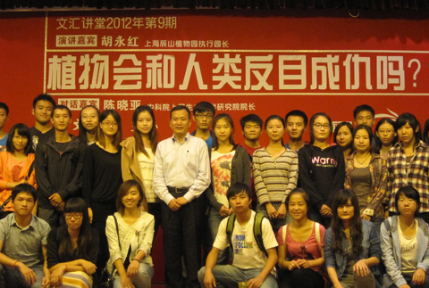 “植物会和人类反目成仇吗?”辰山植物园执行院长胡永红带来了一场视野开阔、色彩丰富的科普讲座,中科院上海生命科学研究院院长陈晓亚院士作为对话嘉宾共同参与,两位专家与现场听众一起分享了精彩的智者对话,分析和展望了植物学研究的发展困境与机遇。在现场提问互动环节中,生态亚博足彩学生积极思考,踊跃提问。