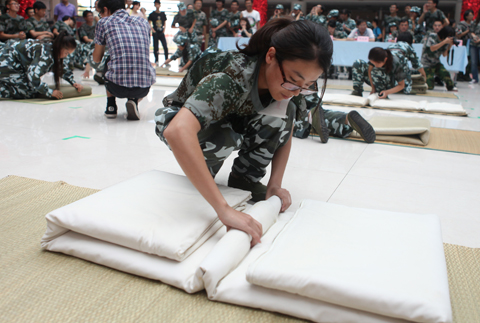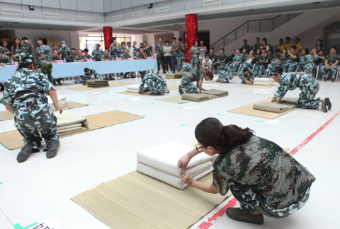 军训,培养了学生军人素质,也反映了我校学生的精神风貌。此次叠被子比赛丰富了大学生军训文化生活,调动了学生参训的积极性,营造了良好的军训氛围。同学们学习到了教官们一丝不苟的生活作风和训练中严厉的教导,为今后的学习和生活获得更大的收获!