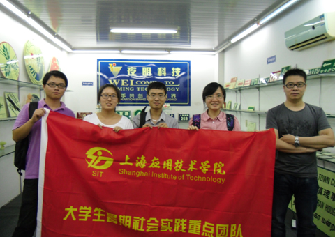 活动前期,光韵团队2次前往上海图书馆收集大量文献资料,并走访多地发放问卷调查,了解消费者对于夜光产品的认知度和需求。为了能进一步了解夜光产品的工艺流程,在指导老师张娜的带领下,7月26日团队前往浙江夜明公司进行实地考察学习。