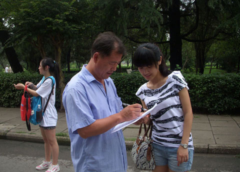 7月14日到达南京,正值暴雨,同学们为取得大桥周末夜间车流量的第一手数据,马不停蹄地驱车赶往南京长江大桥。每次统计分为四个时间段,以五分钟为节点,分别测算大、中、小型车辆。为了解平日、双休日、早高峰、晚高峰以及日常时间段等不同时段和顺逆方向的车流情况,组员们每天犹若在“火炉”中待上5个小时。同时,调研小组深入大桥两边及周边商务区,走访了大桥民警、管理人员和大量周边的居民,调研群众对大桥的车流拥堵状况的了解以及对大桥的意见。大桥的管理人员和民警们详细介绍了大桥的历史、构造和各个时间段的车流情况,“这里通常在晚高峰时段会比较拥堵,均保持在1个小时以内。”调研小组将综合之前的测量结果和调研意见等,在后期工作中形成调研结论。
