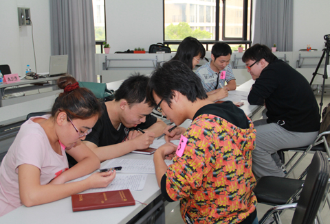 面试分为笔试、团体训练和专家评审三个环节。6名志愿者参加了人际关系、心理适应、情感认知三个方面的问卷测试。朱引芳老师将6名志愿者分成两组开展了情景模拟的团体训练,志愿者们通过交流、沟通达成一致,再逐一分享团队合作的心得和感言。专家问答环节中,三位老师就志愿者的动机和未来就业方向作了深入了解,同时对我校志愿者不畏艰苦积极投身西部、服务西部的奉献精神表示肯定和支持。