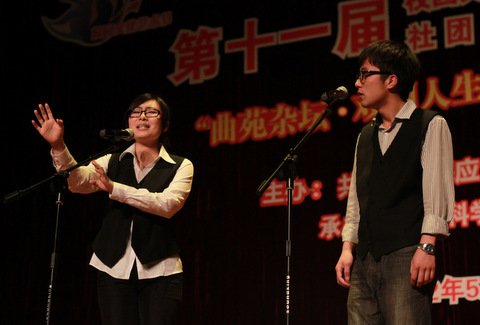 5月15日晚6点,第十一届校园文化艺术节暨社团文化节系列活动之“曲苑杂坛?戏剧人生”相声小品大赛拉开帷幕。本场比赛由校团委主办,材料亚博足彩承办,校团委书记韩磊、材料亚博足彩党总支副书记、副院长王占勇出席活动并为获奖同学颁奖。