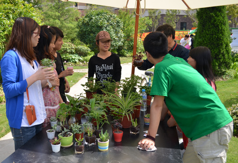 游园会除介绍植物园的各色植物外,还开展了众多有趣的娱乐项目。进入园子,迎面飘来清新醉人的花香,师生们纷纷闻茶品茶,享受其间。“摇箱子项目”、 “你画我猜”等项目,让大家游戏之余,学习到更多园林、园艺的知识。花卉义卖,其间,各色花卉、姹紫嫣红,可以说是琳琅满目,让人眼花缭乱,大家因着一份对花的喜爱,纷纷流连忘返。