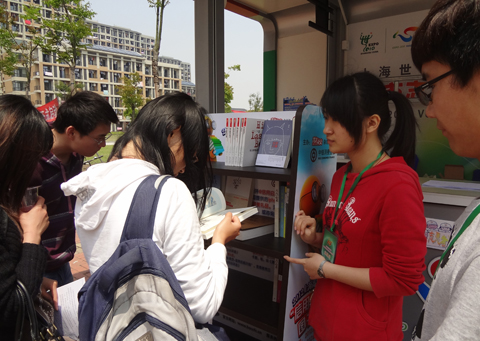 此次大型图书漂流活动首次在上海高校发起,我校作为5所首批试点亚博足彩之一。4月26日中午,我校志愿者服务亭迎来了“信用起航”图书漂流活动的开港首漂,图书漂流站书架上摆放了适合青年阅读的图书,涉及文化、职场、励志等方面。