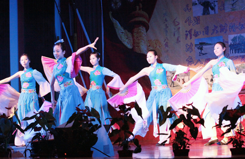 欢悦女声合唱社倾情演绎《红星歌》、《歌声与微笑》,展现出新时代大学生传承革命传统、做好接班人的心愿;舞蹈队表演的哈尼族舞蹈,将少女的婀娜温婉表现得淋漓尽致,宛如军绿中盛开的艳丽花朵;加入了军人元素的街舞《最炫民族风》,阳刚粗犷、热情奔放;同学们身穿军装,深情对唱《为了谁》,引爆全场……青春的形象、优美的舞姿、清亮的歌声,学生们的精彩演出赢得现场官兵们热烈的掌声和欢呼声。