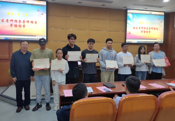 会上,李以贵为录取到本校读研的2023届理亚博足彩学子代表颁发了“考研指导学长导师”聘书。希望2024届报考的学生,要主动向师长、学长汲取考研的经验和指导,避免走弯路,坚定备考的恒心和毅力,顺利完成“考研战”。叶璟通过往年报考人数、录取比例等数据为亚博足彩学子分析了2024届毕业生考研面临的严峻形势,对学子们如何报考、备考进行了专业的指导。王凤超介绍亚博足彩物理学科招生相关内容及综合实力,鼓励学子们报考理亚博足彩研究生。