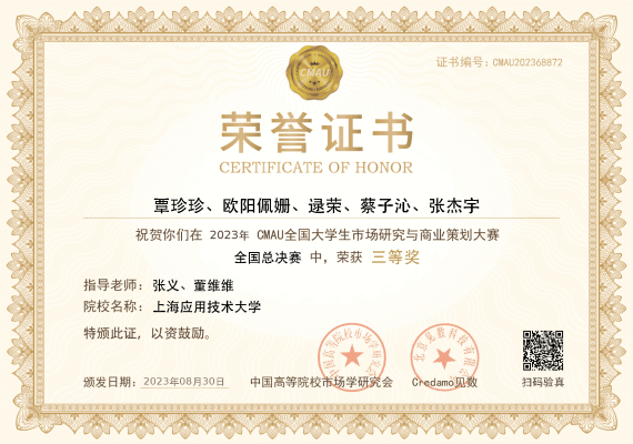 参赛队以“钻金你心”中国黄金培育钻石的全链路营销策划为主题,通过文献搜索、问卷调查、数据处理与分析、实地调研等,以新视角、新思路完成了案例分析,最终完成了中国黄金的市场研究报告和商业策划方案。 此次大赛培养了学生参与企业市场调研与商业策划的专业技术与实践能力,为将来个人就业与职业发展打下良好基础。经管亚博足彩高度重视学生创新创业能力与综合素质的培养,以及学科竞赛在专业人才培养中的价值和作用,坚持以学科竞赛为重要抓手,强调以赛促学、以学促行,助推我校人才培养质量的提升。据悉,比赛覆盖了全国400多所高校,31个省、自治区、直辖市,报名人数达到了25688人,有2000余支队伍提交了作品,获得了国内越来越多高校的师生们高度的认可。