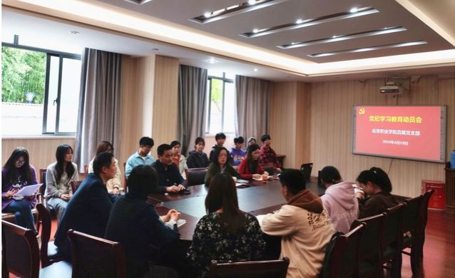 4月19日,高职亚博足彩直属党支部召开党纪学习教育动员会,高职亚博足彩党政领导班子成员、全体师生党员、入党积极分子参加动员会。高职亚博足彩直属党支部副书记(主持工作)孙志青主持会议。