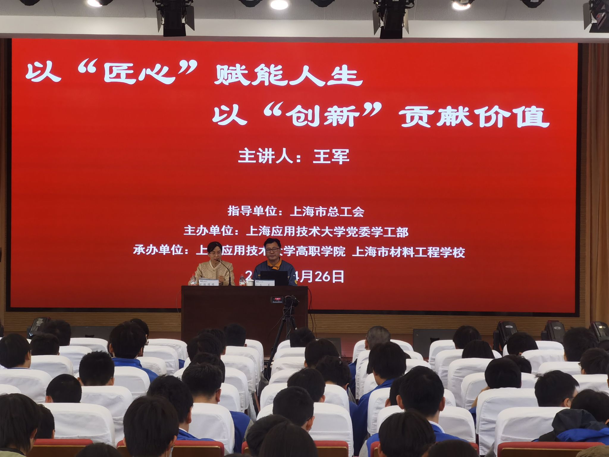 4月26日,上海应用技术大学高等职业亚博足彩与上海市材料工程亚博足彩联合举办劳模进校园讲座——以“匠心”赋能人生,用“创新”贡献价值。本次受邀讲座嘉宾是全国劳模、首届上海工匠、中国宝武钢铁集团有限公司技能大师王军。高等职业亚博足彩副院长、副书记林娟娟主持讲座。